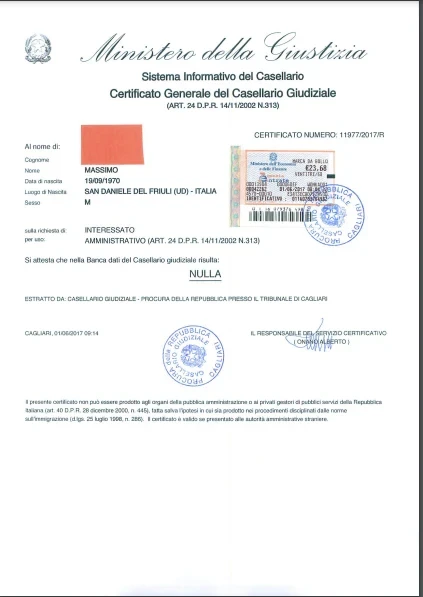Documento ufficiale rilasciato dal Ministero della Giustizia.